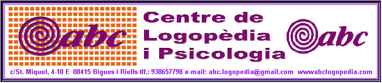 abc Centre de Logopèdia i Psicologia  c/St. Miquel, 4-10 local E  08415 Bigues i Riells  tlf.: 938657798  e-mail: abc.logopedia@gmail.com  www.abclogopedia.com