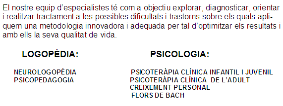 abc Centre de Logopèdia i Psicologia c/St. Miquel, 4-10 local E 08415 Bigues i Riells tlf.: 938657798 e-mail: abc.logopedia@gmail.com www.abclogopedia.com